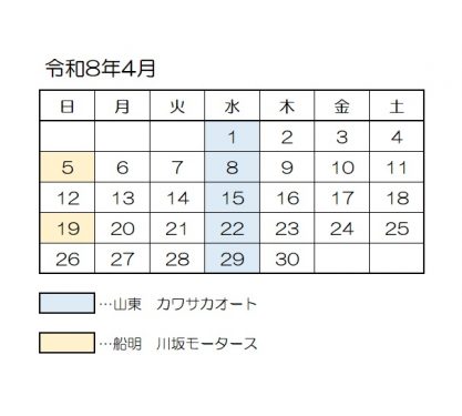 株式会社川坂モータース > ニュース > 4月お休みのお知らせ